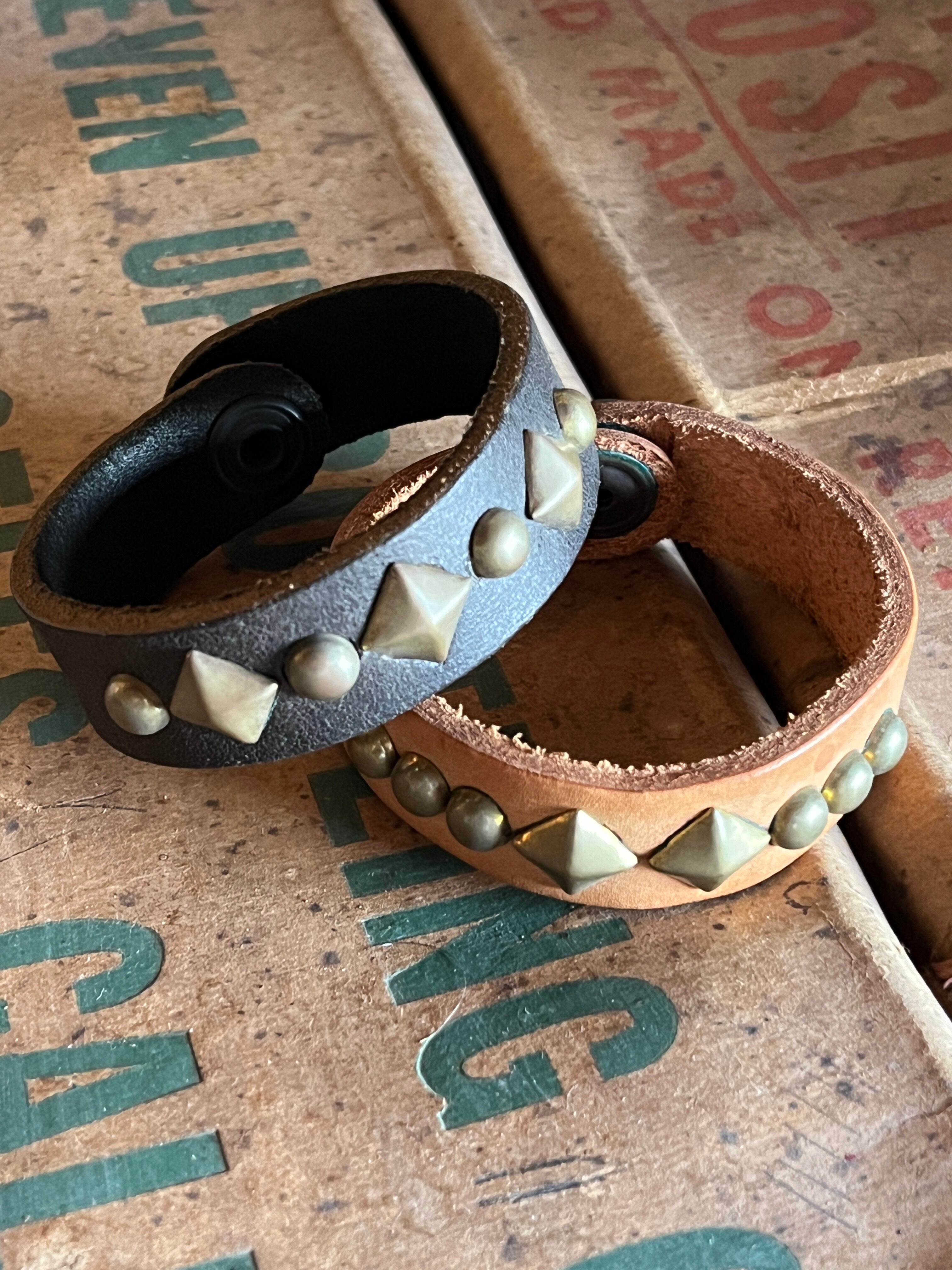 レザーブレスにスタッズを入れた